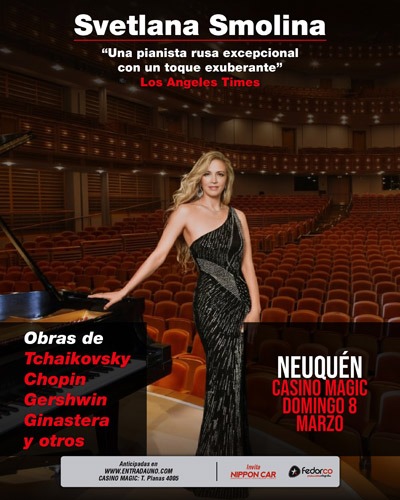 Svetlana Smolina llegará a Neuquén con un recital de piano el domingo 8 de marzo, a las 21:00 horas, en CASINO MAGIC. La reconocida pianista rusa ofrecerá un programa de alto virtuosismo que recorre obras emblemáticas del repertorio clásico y…